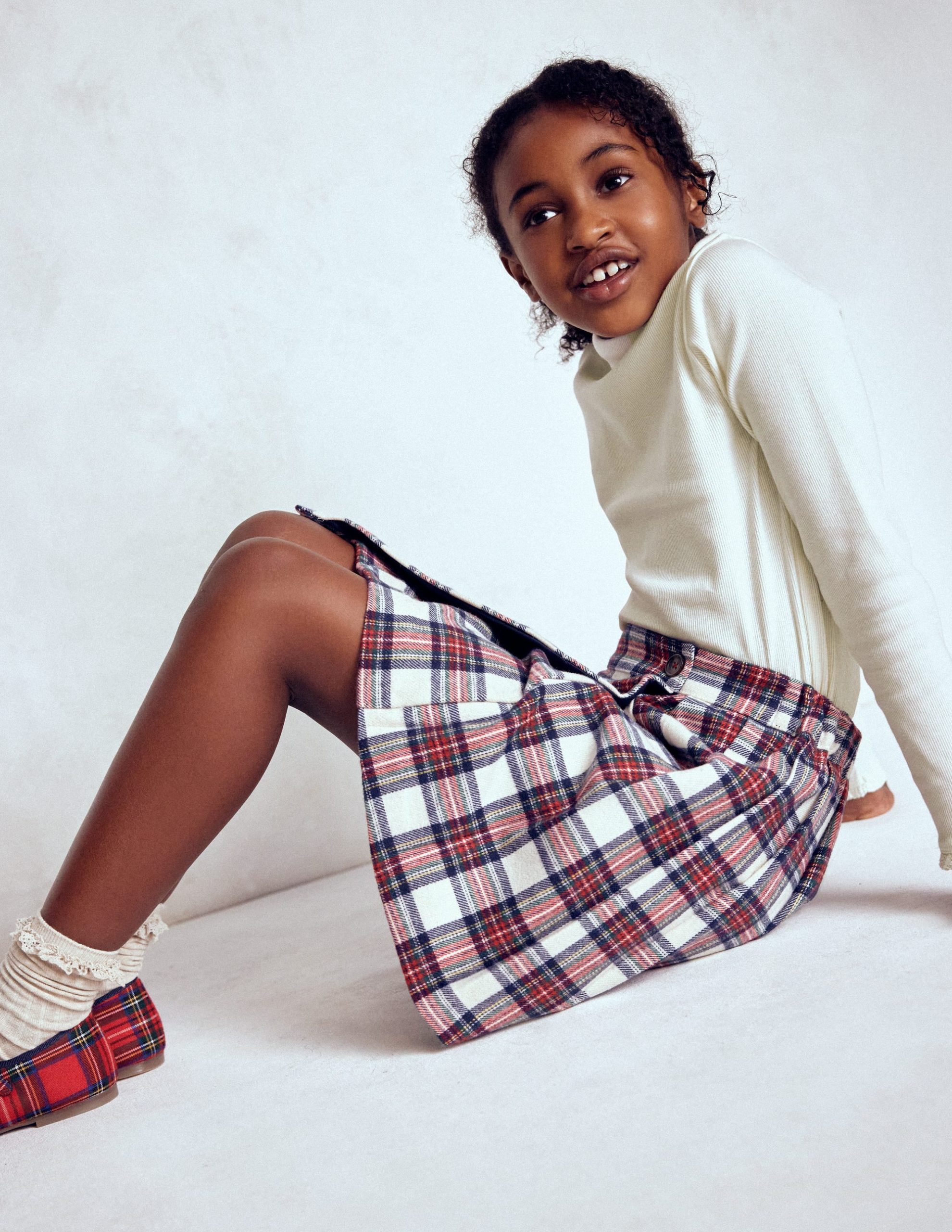 This cotton-rich long-sleeve top is perfect with dungarees or under a jumper to show off the frilled roll neck. Choose from prints and colours. including neutrals and brights.