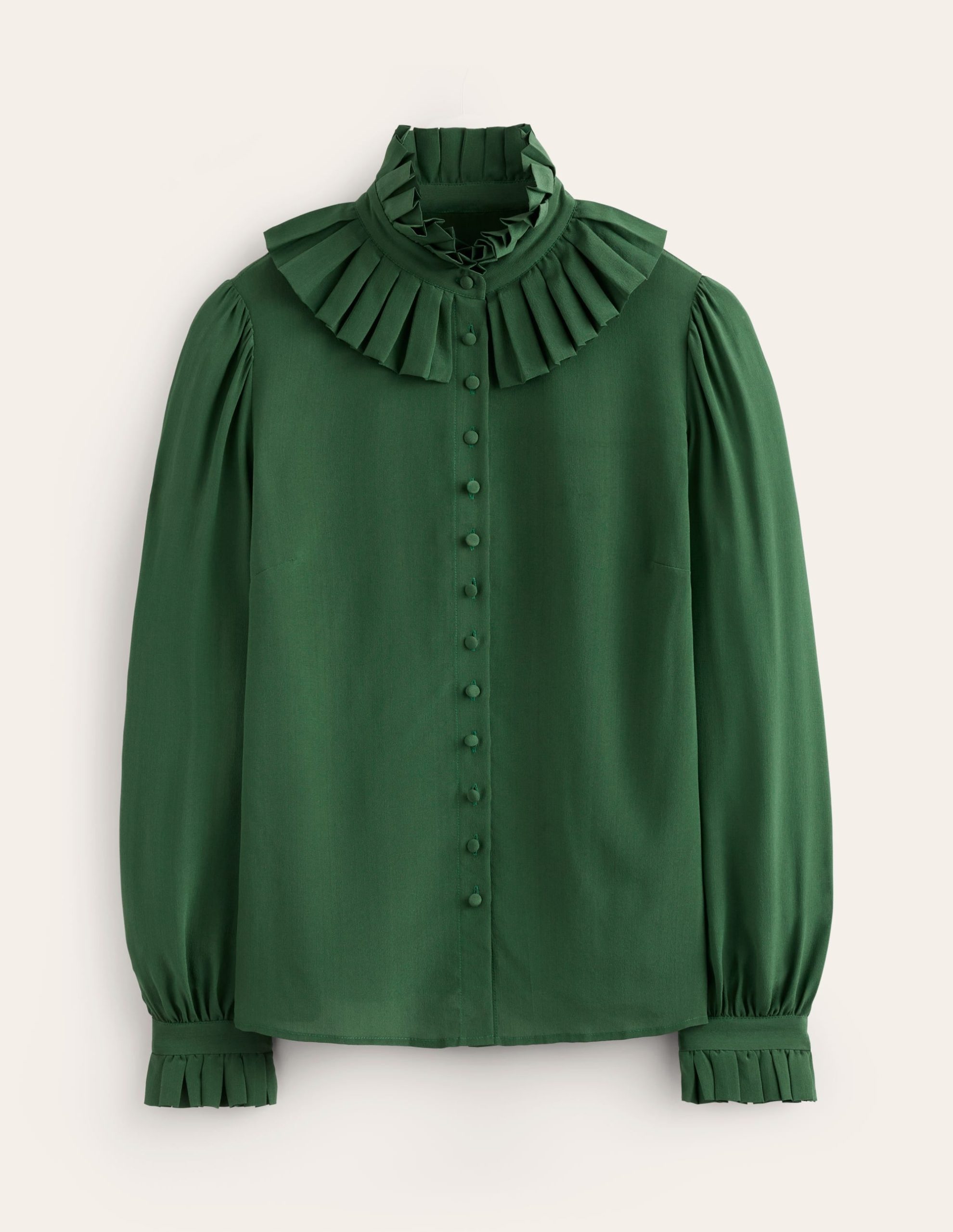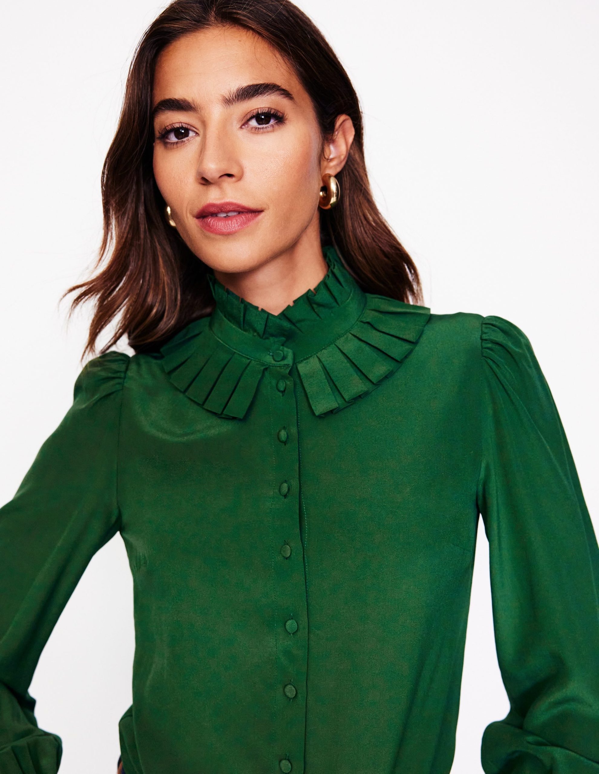 Be the first to review “Ruffle Collar Silk Blouse-Pine”