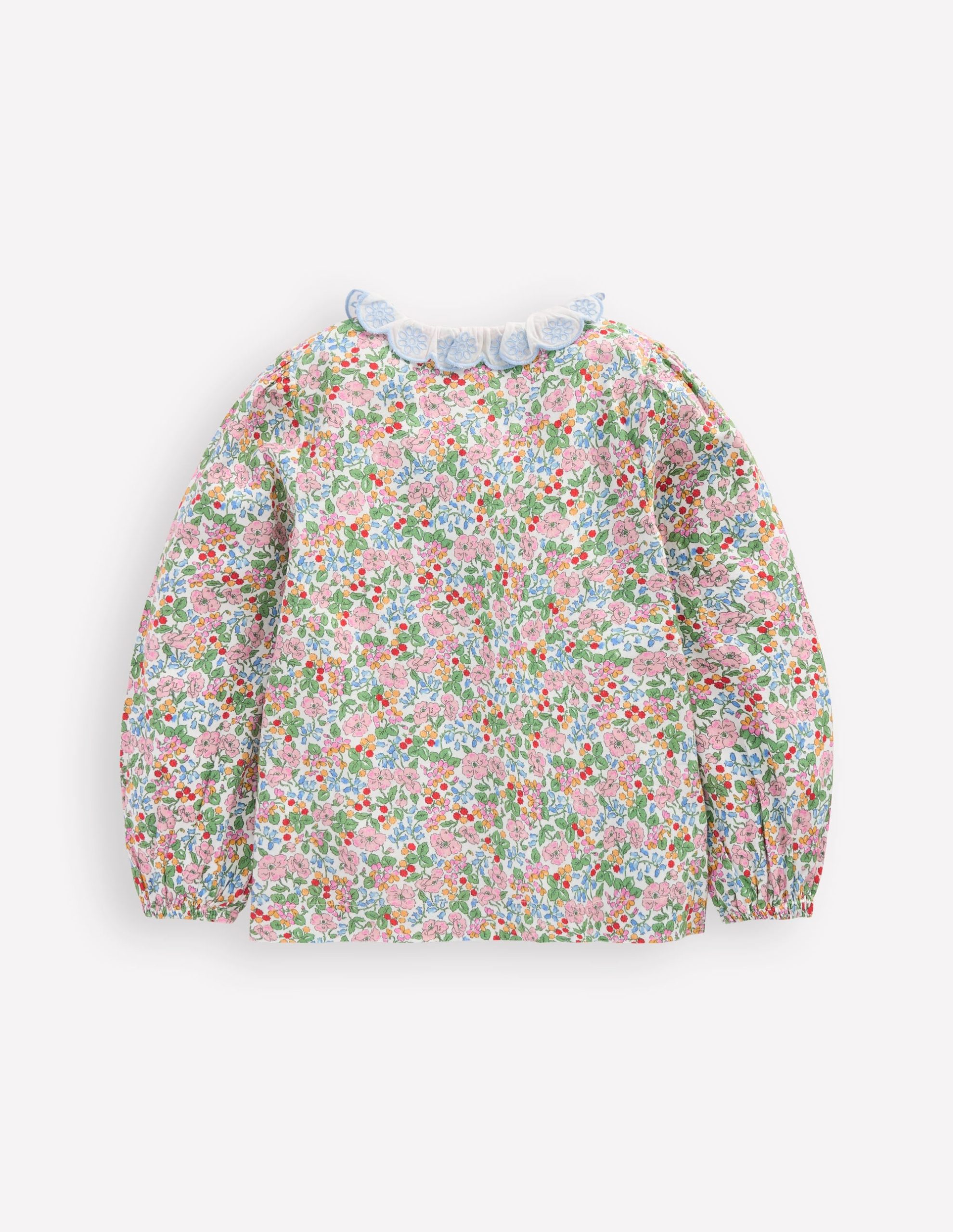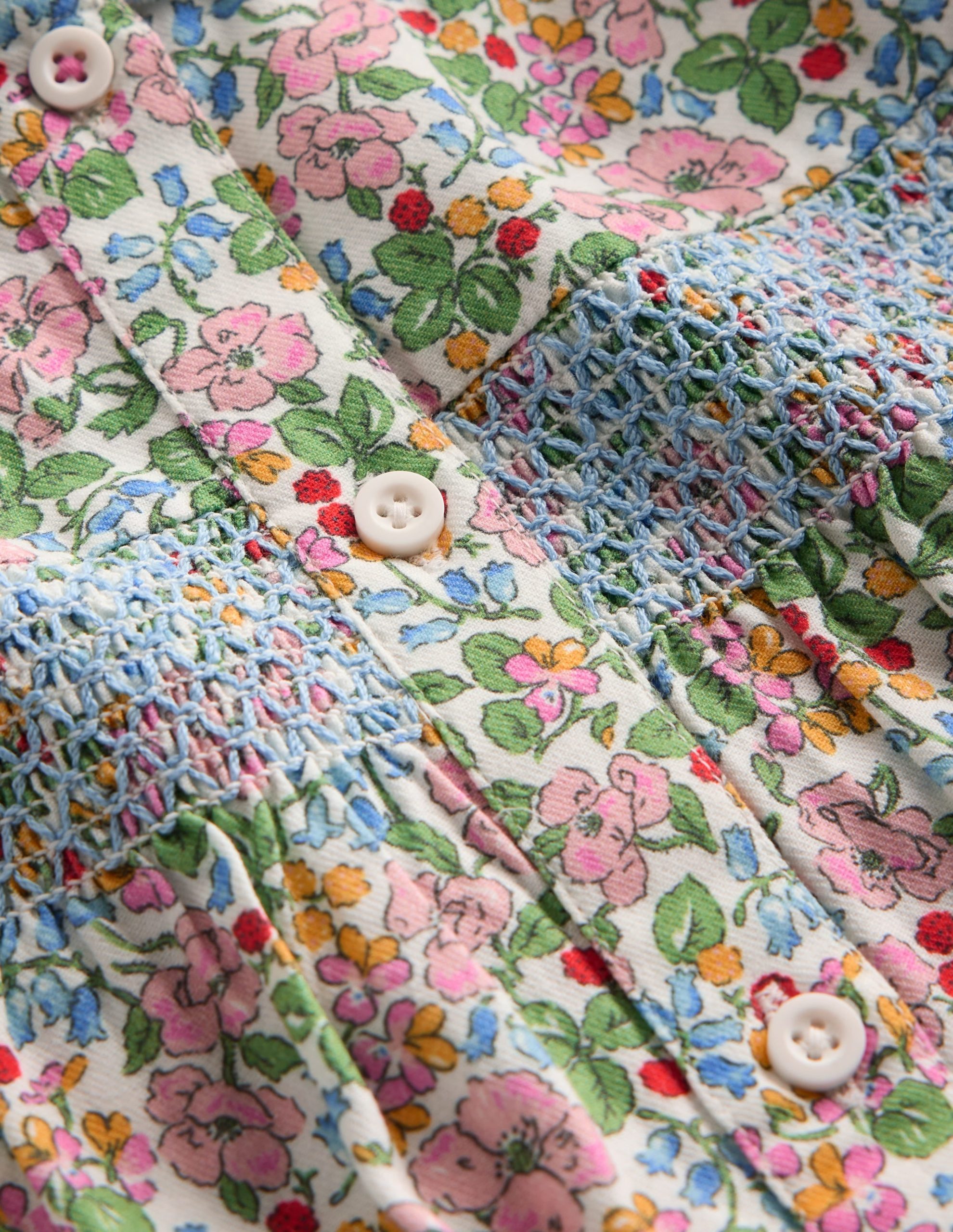 Scalloped Collar Smocked Shirt-Soft Ivory Berry Floral