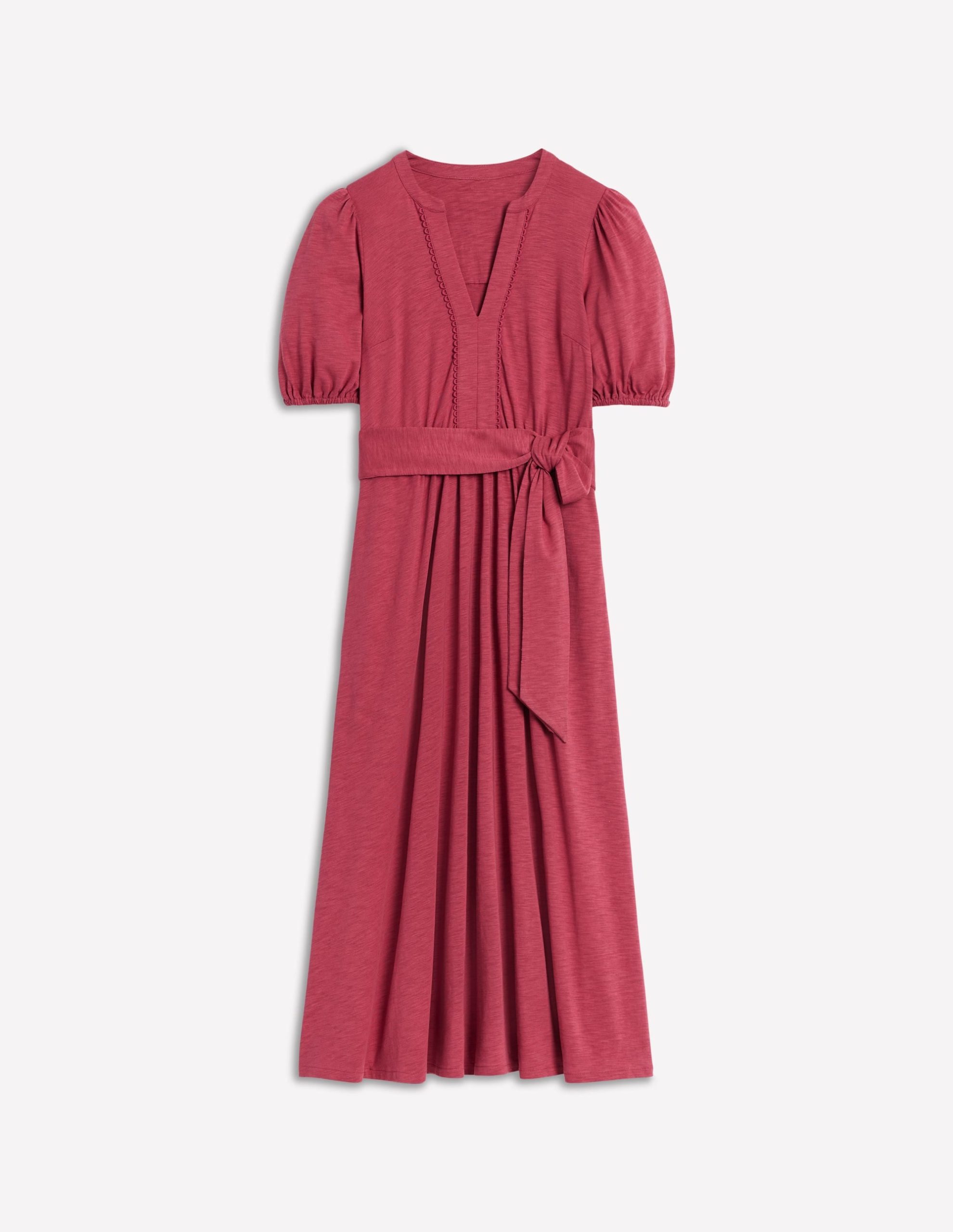 Sofia Trim Jersey Midi Dress-Terracotta Red