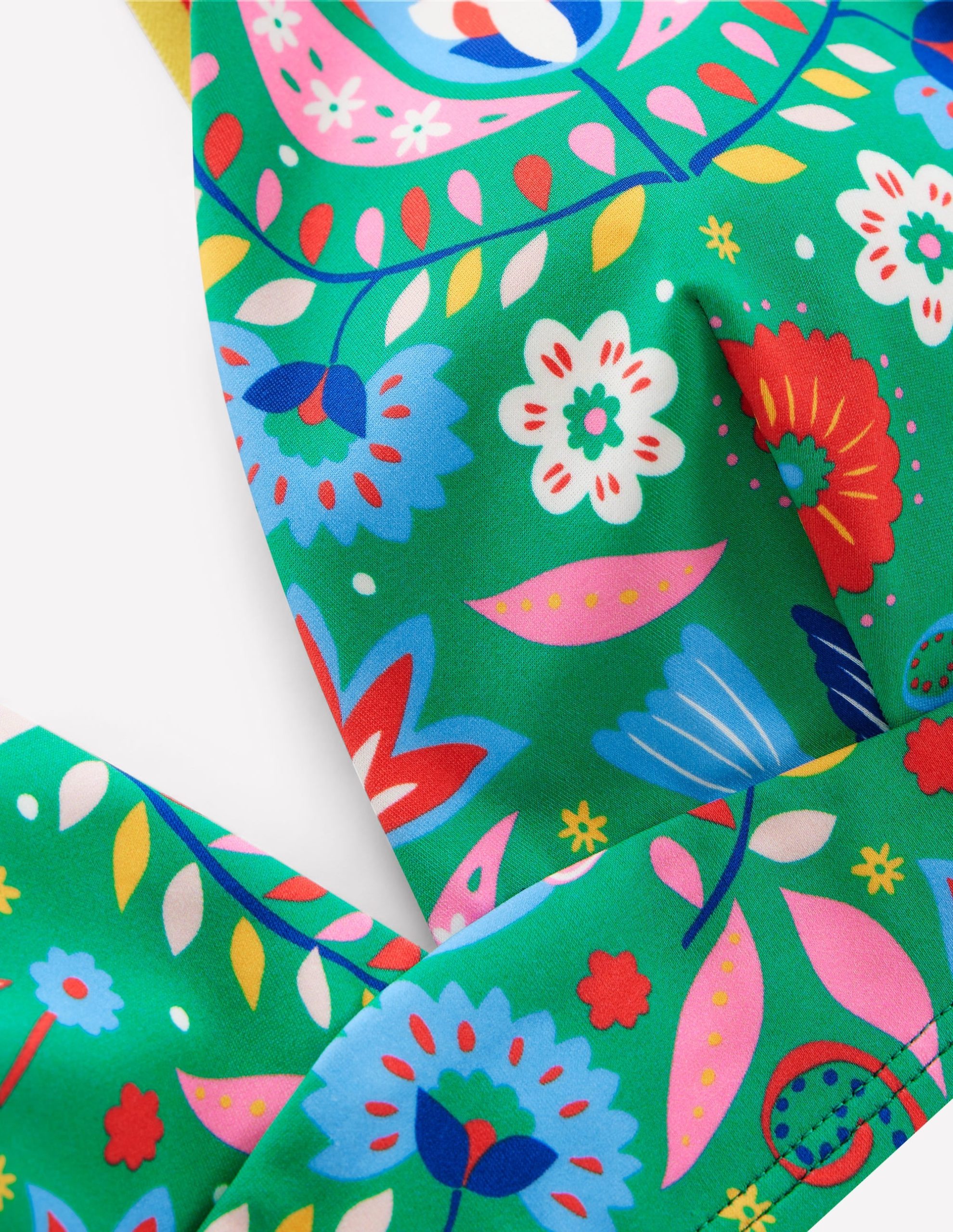 Stripe Trim Bikini Top-Green. Decorative Garden