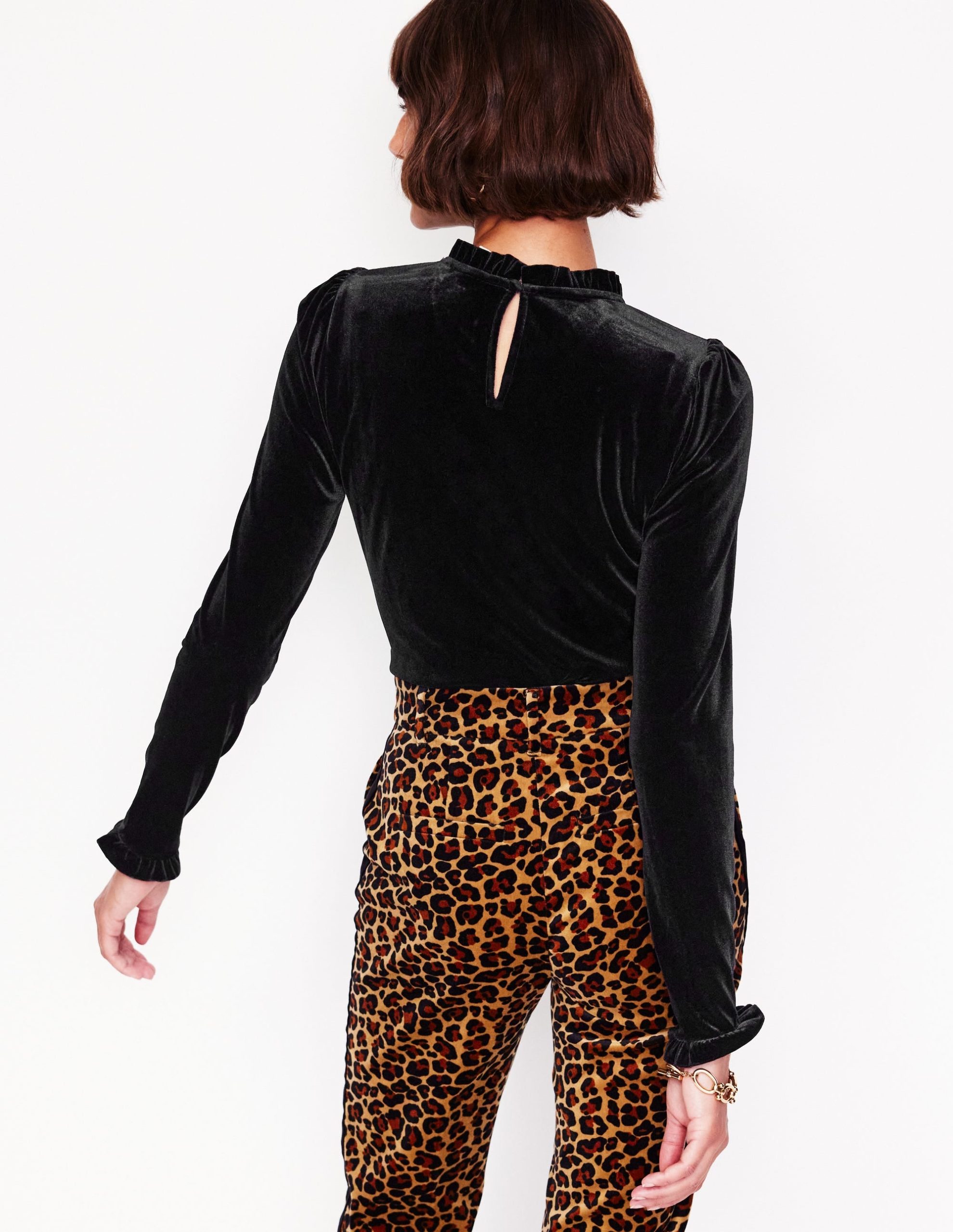 Look up understated elegance in the dictionary and you’ll probably see this top. It’s made with sumptuously soft velvet and has delicate frills around the neck and cuffs. making it a party season staple
