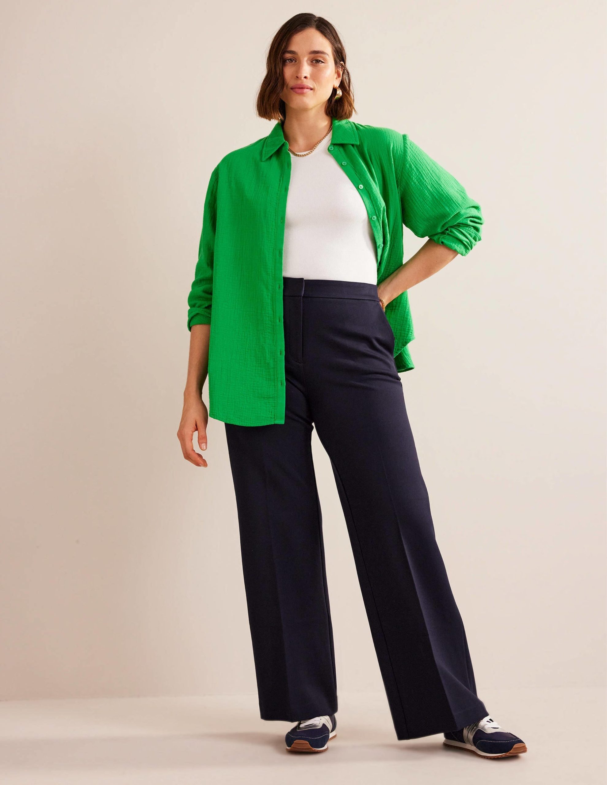 They say you can’t improve on perfection. but we’ve waved our sartorial magic wand to create an upgraded iteration of the Hampshire trousers. The Westbourne pair combine leg-lengthening wide legs with neat front-pressed creases and ponte fabric to balance smartness and comfort.
