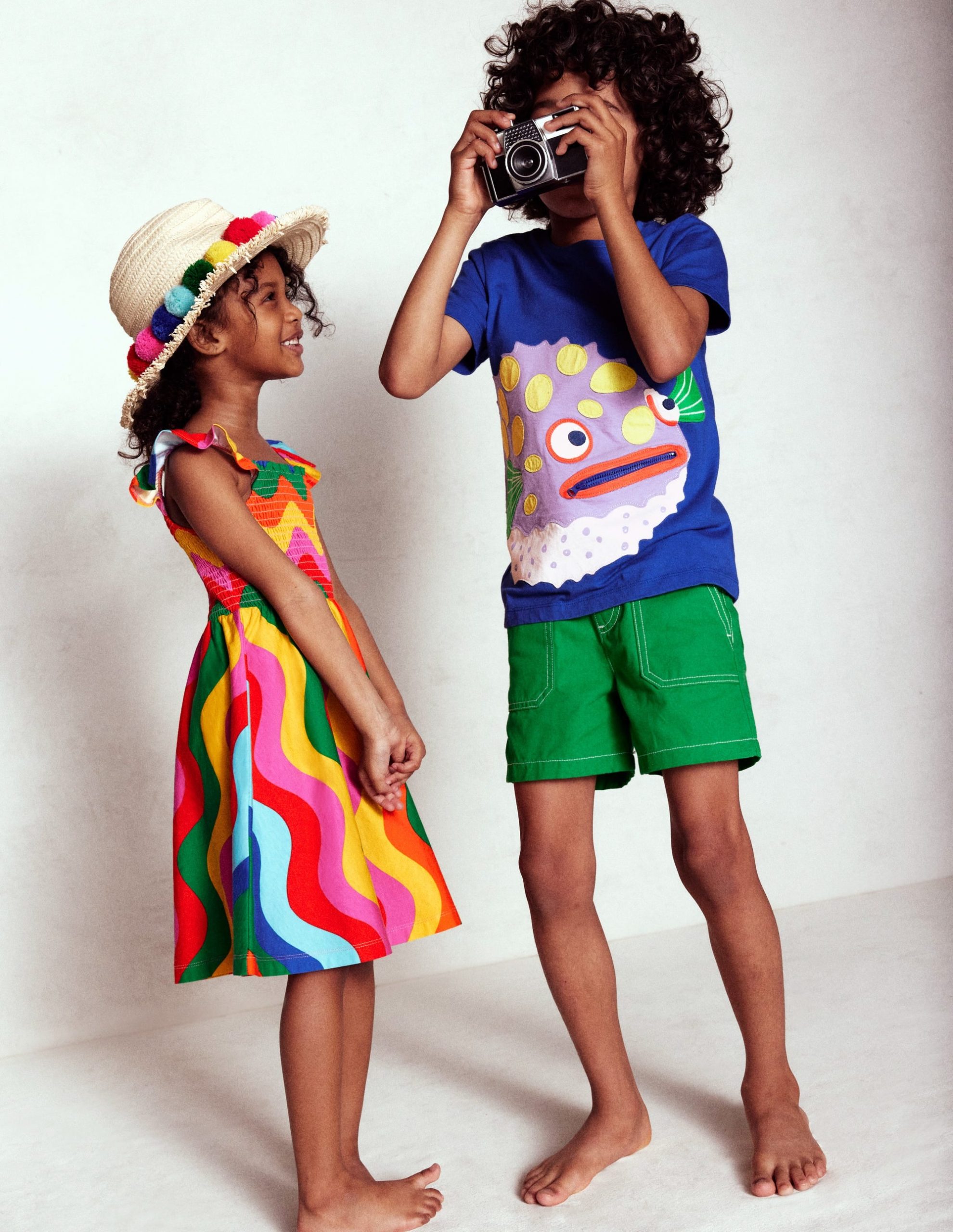 Flutter sleeves and a smocked bodice make this dress a dreamy option for your little ones. It’s made from cotton-jersey with a softly gathered skirt and out of this world bold prints.